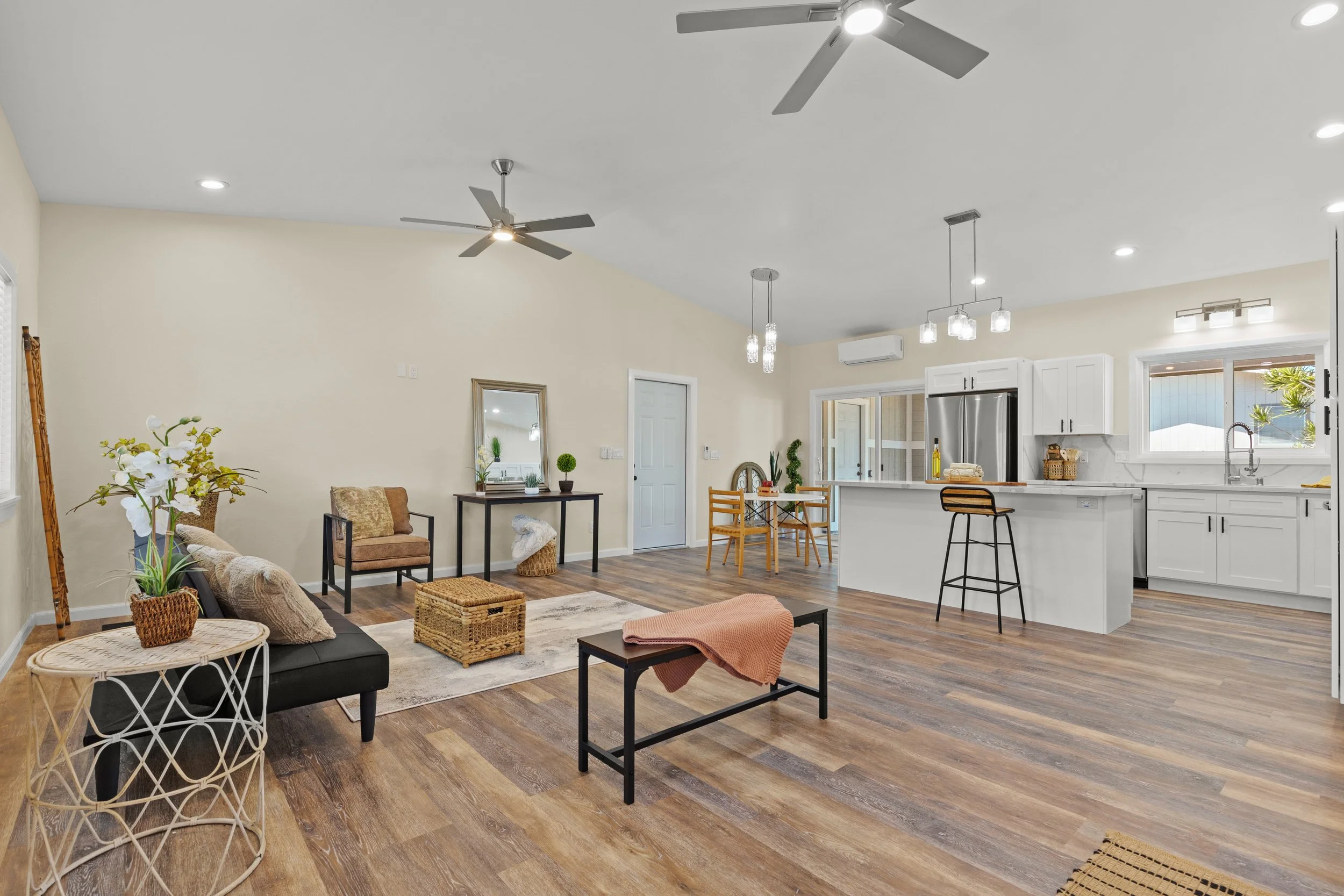 This brand new build in the heart of Hilo has over 2,700 square feet under roof, including three bedrooms, two baths, and a separate private guest suite with wet bar and entry of its own.